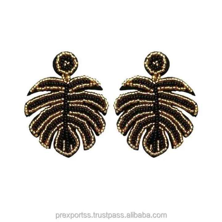 High Quality Handwork Embroidery Seed Beaded Leafy Drop Earring Summer Beach Parties Gifting Modern Hoop Trendy Wedding