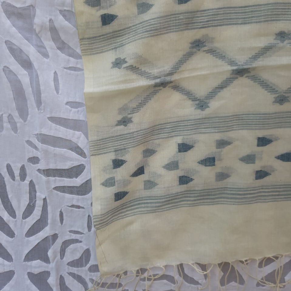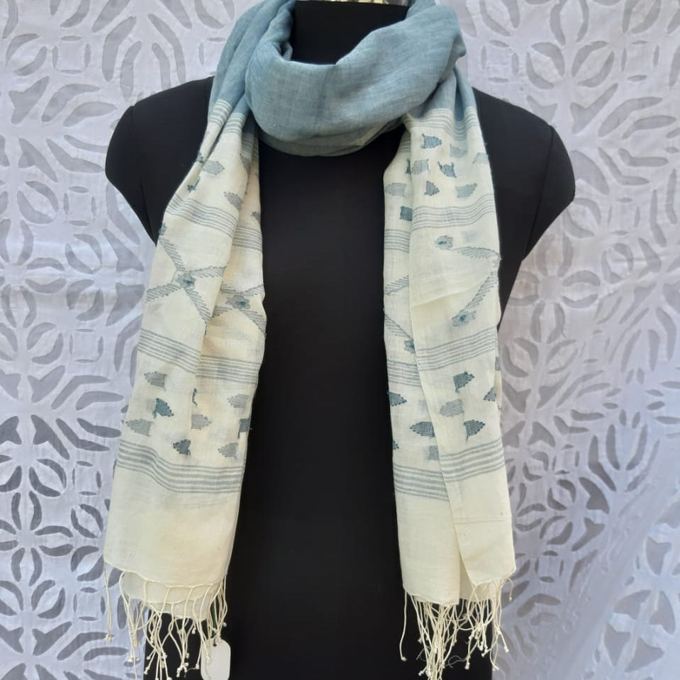 High Quality Handwoven Muslin Jamdani Cotton Fabric Scarves With Neck Wrap Dupatta Scarves, Head Cover Up Hijab Scarf Dupatta