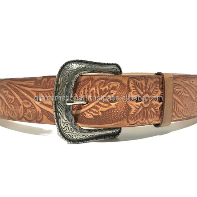 High Quality Harness Leather Floral Carving Men and Women Genuine Western Leather Hand Tooling Belt for Jeans or Trouser