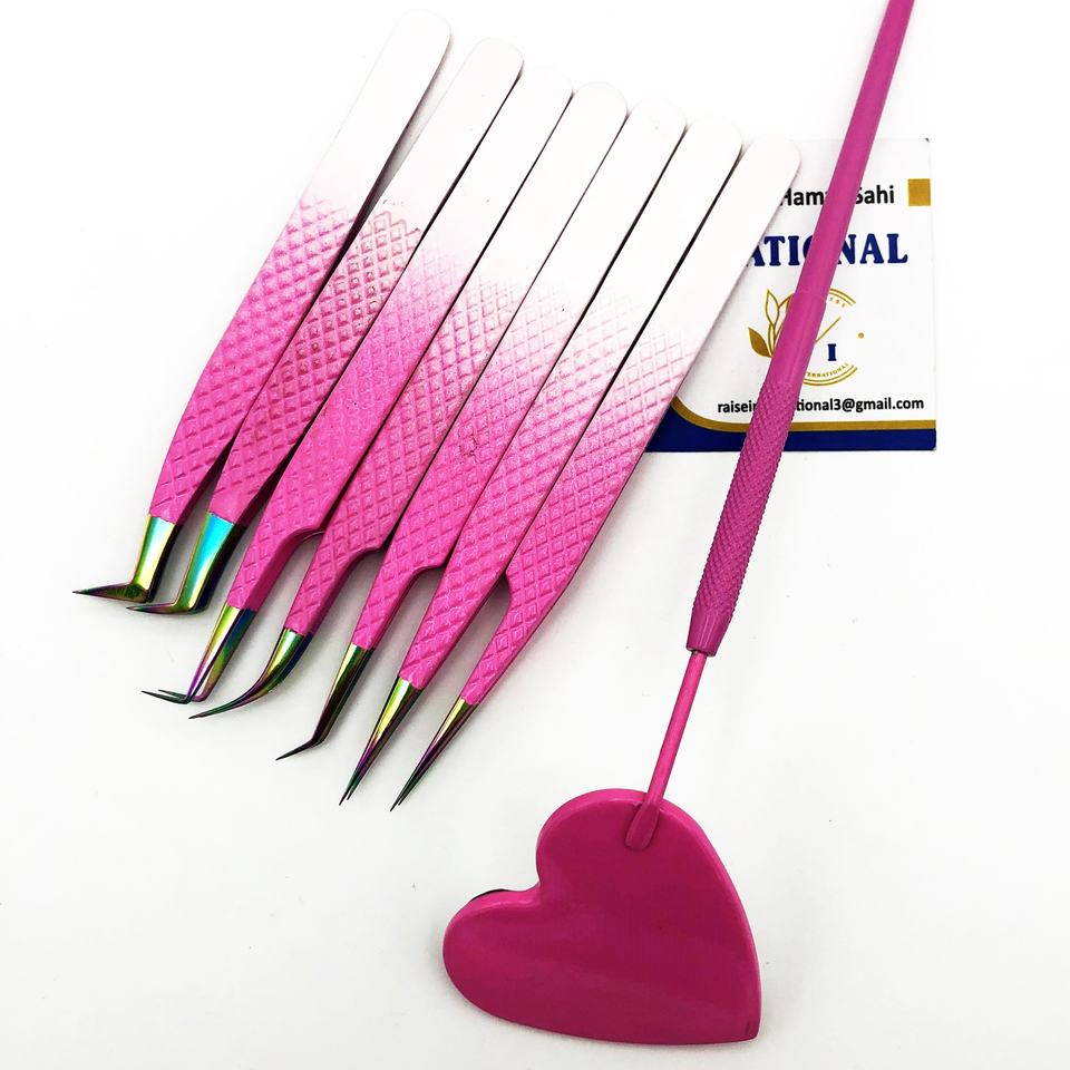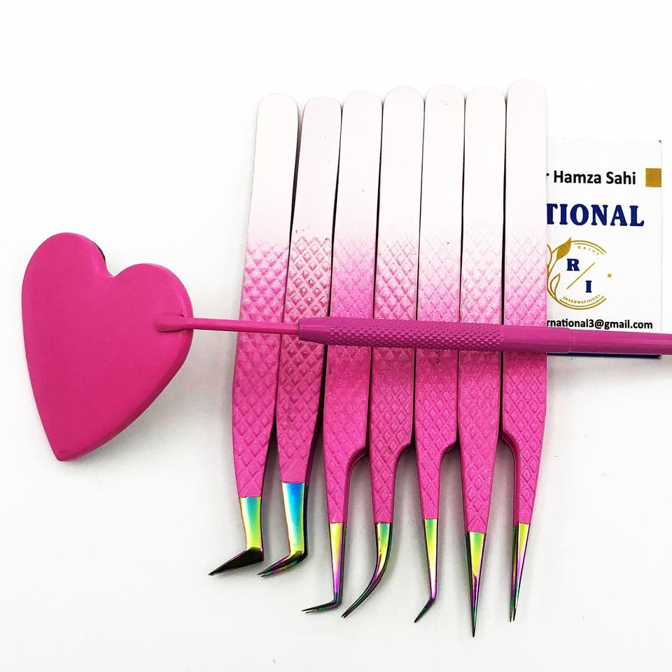 High Quality Heart-Shaped Stainless Steel Mirror Pink Ombre Diamond Dust Tips Precision Grip Handle Eyelash Tweezers