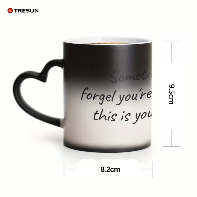 High-Quality Heart-shaped Grip Mugs Custom DIY Matte Heat Change Color 11oz Ceramic Coffee Cup Magic Cup