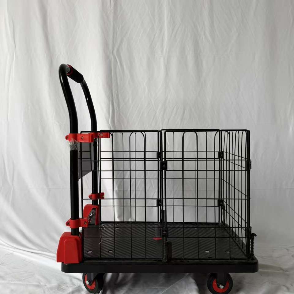 High Quality Heavy Duty Durable Anti-skid Panels Platform Truck Folding Hand Trolley with Fence and Silent Wheels Made in China