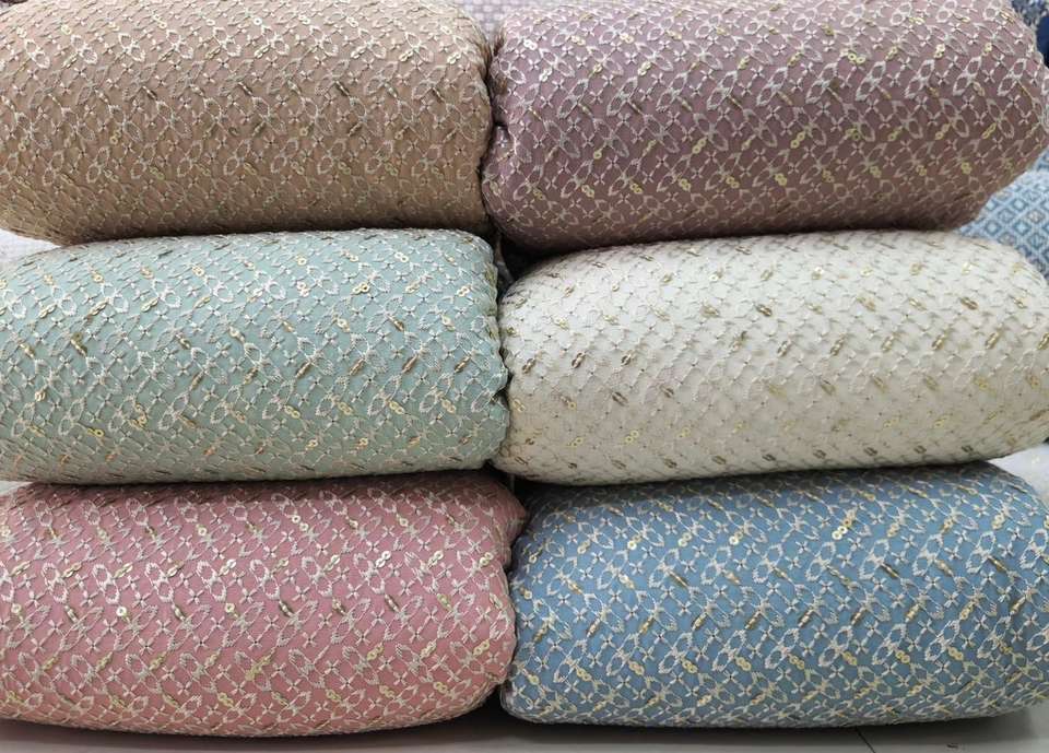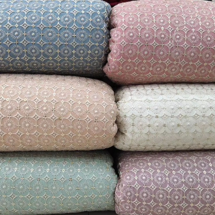 High Quality Heavy Georgette Satin Fabric for Wedding Dresses PVC Printed Florals Schiffli Embroidery Tulle Material Dress
