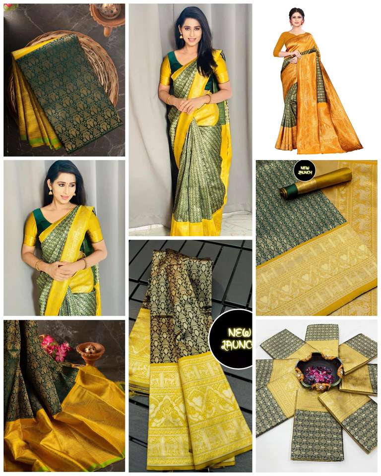High Quality Heavy Jacquard Silk Sarees with Golden Big Jacquard Weaving Border Indian & Pakistani Clothing