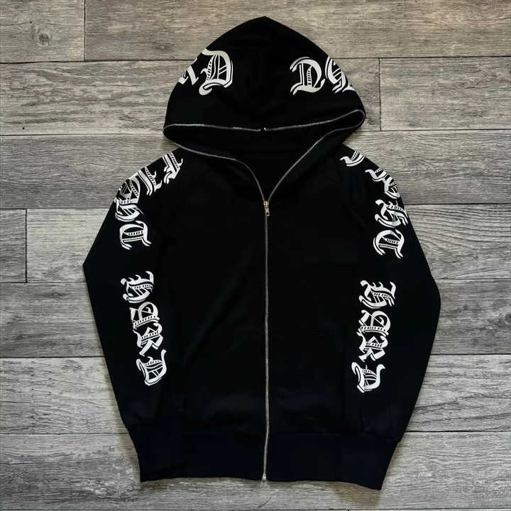 High Quality Heavyweight 100% Cotton Men's Hoodie Custom Logo Screen Printed Full Zipper Streetwear High Grade Hooded Sweatshirt