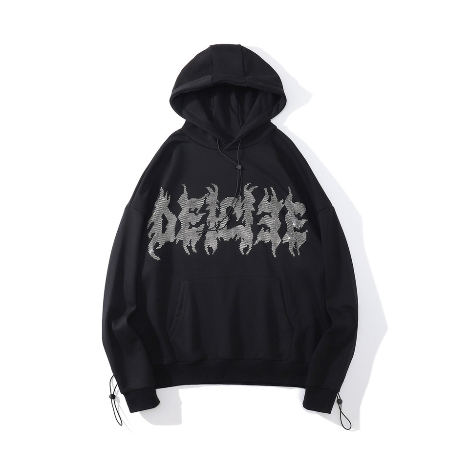 High Quality Heavyweight Cotton Hoodie with Rhinestone Accents Durable Winter Pullover Unisex Urban Fashion Wear