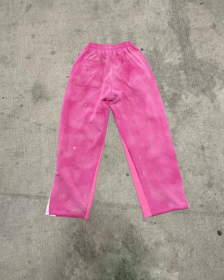 High Quality Heavyweight French Terry Wide Leg Joggers Custom Logo Wholesale Oversized Flare Sweatpants Casual Style Rhinestones