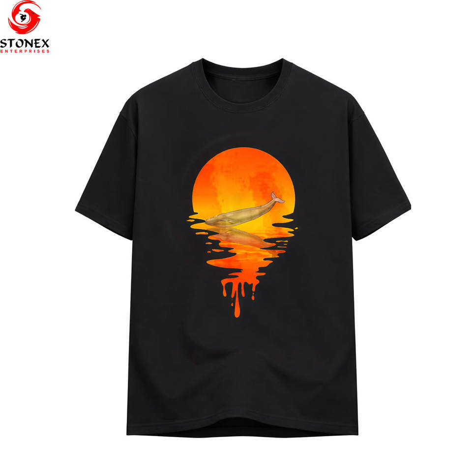 High Quality Heavyweight Organic Cotton Men's Oversized T-Shirt Custom Print Logo Plus Size Customizable, Fishing Sunset Print