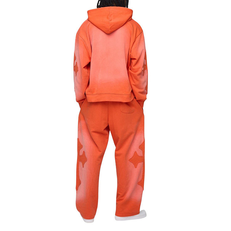 High Quality Heavyweight Oversized Boxy Cross Applique Embroidery Wash Hooded Vintage Hoodies Man Tracksuits Set