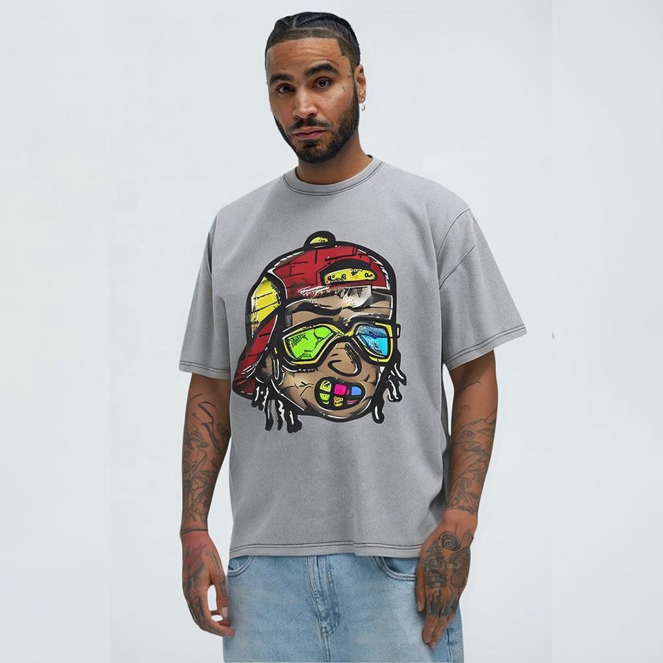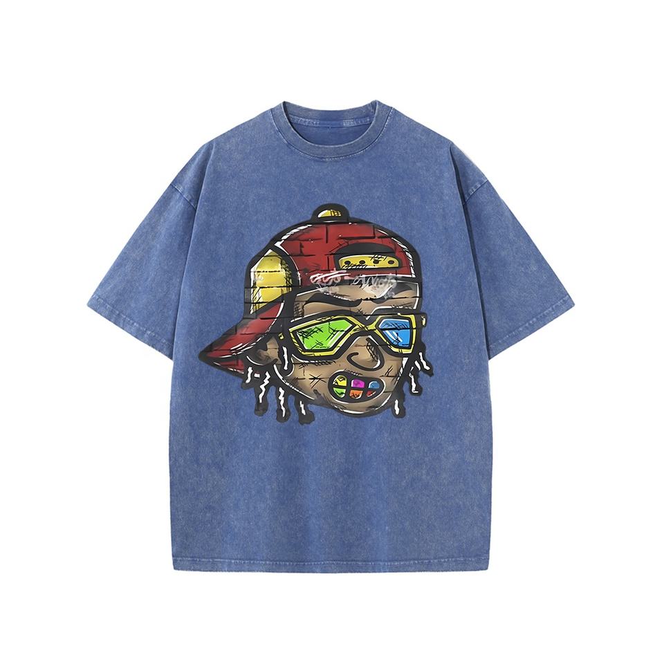 High Quality Heavyweight Unisex Retro Acid Washed Cotton Tshirt Comfortable Oversized Print Custom O-Neck Tshirts for Men