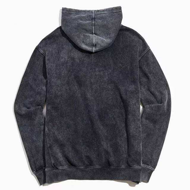High Quality Heavyweight Washed Hoodie for Men 100% Cotton French Terry Vintage Distressed Acid Wash Zip-Up Design Solid Pattern