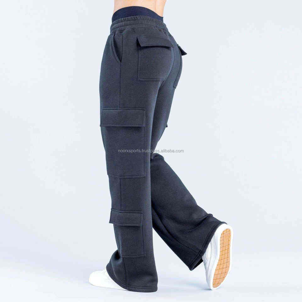 High Quality High Waist Wide Leg Cargo Joggers Sweatpants Women Plus Size Loose Casual Cotton Fleece Vintage Casual Baggy Pant