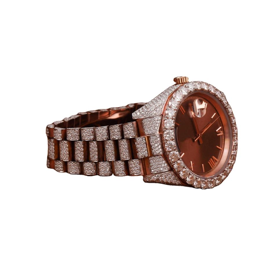 High Quality Men's Quartz Watches Hip Hop Style with Moissanite Watches VVS Clarity Diamonds Leather Band Low Price Reloj
