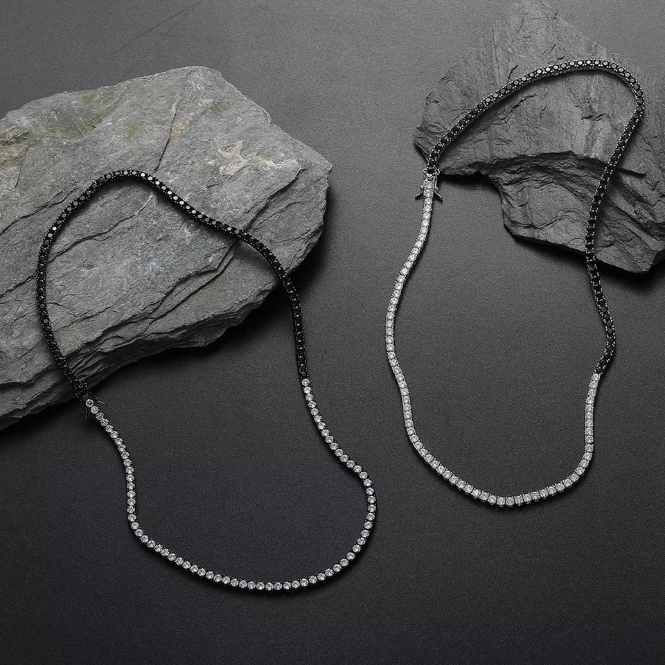 High Quality Hiphop Style Choker Necklaces 3mm Black and White Shining Zircon Tennis Chain Necklace for Men