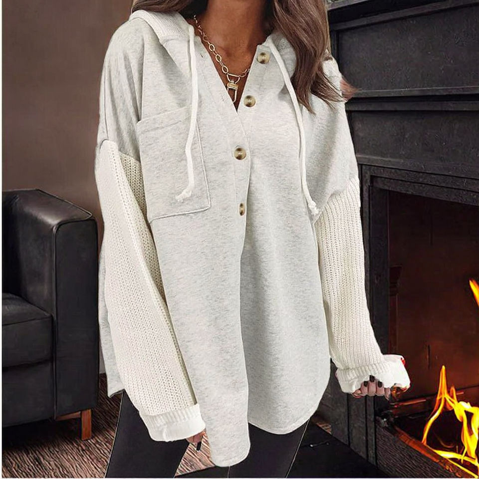 High Quality Hooded Cardigan Fall/Winter Sports Top Button Coat Unlined Casual Long Breathable Knitted Fabric Made Solid