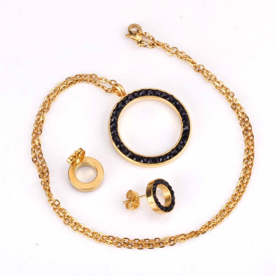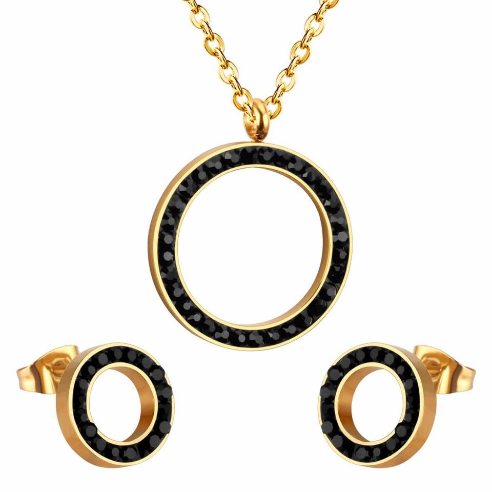 High Quality Hoop Stainless Steel Jewelry Set 18K PVD Gold Plated Trendy Women Statement Hollow Round Earrings and Necklace Sets