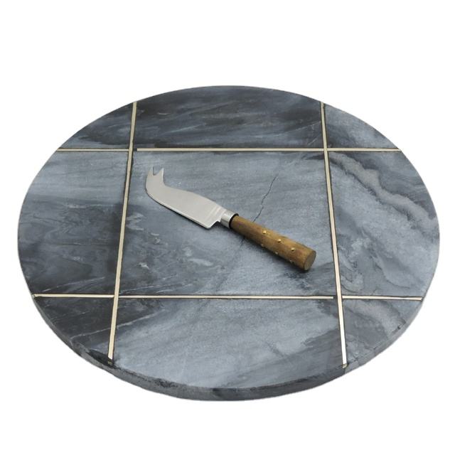 High Quality Hot Selling Black Marble Stone & Resin Inlay Kitchenware Chopping Board with Knife Set Kitchen Tools Set
