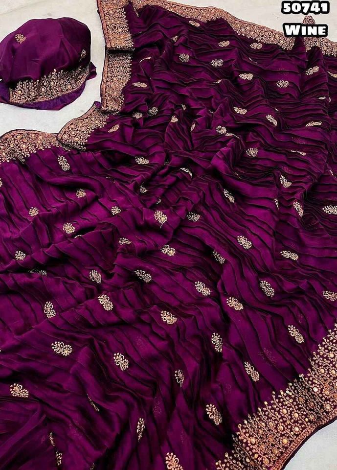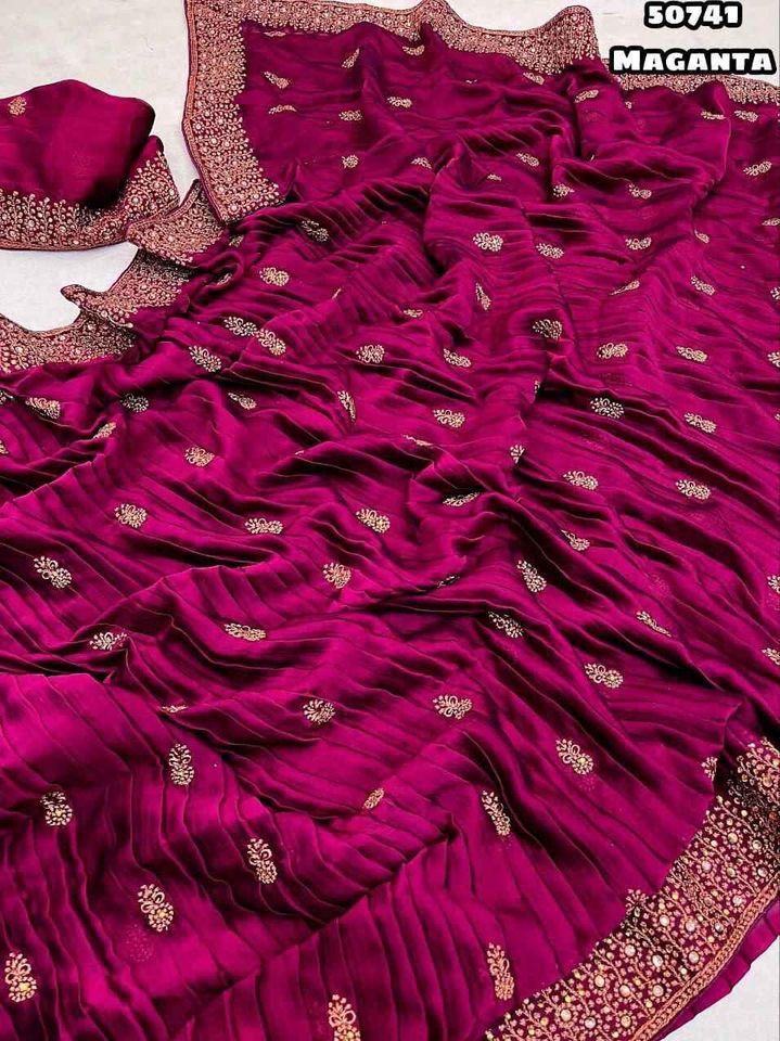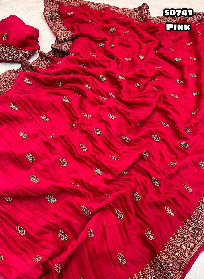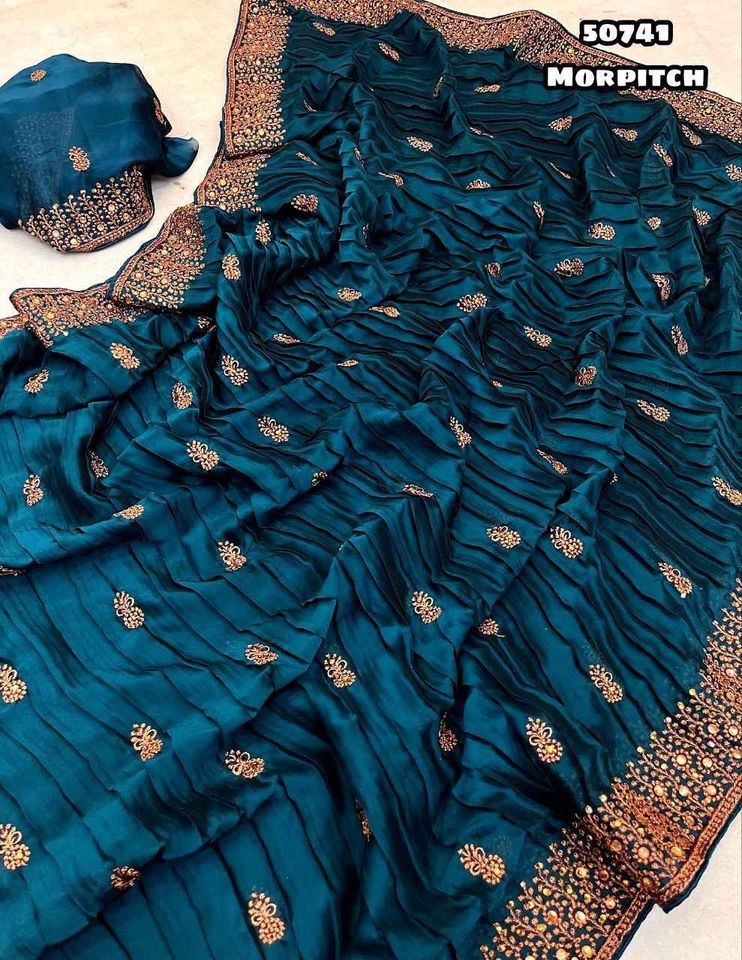 Product Name:Wedding & Party Wear Georgette Crush Embroidery Work Saree For Women
