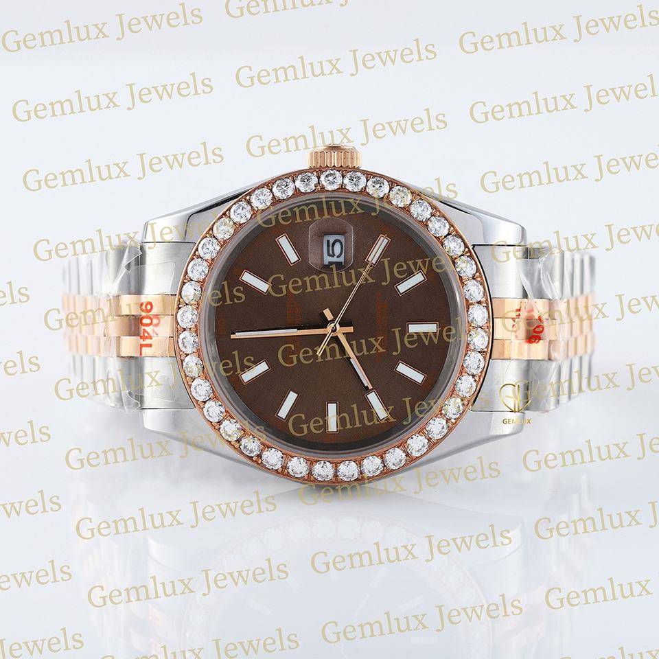 High Quality Hot Selling Pass Diamond Tester Two Tone Brown Dial D VVS Iced Out Moissanite Diamond Bezel Studded Hip Hop Watch