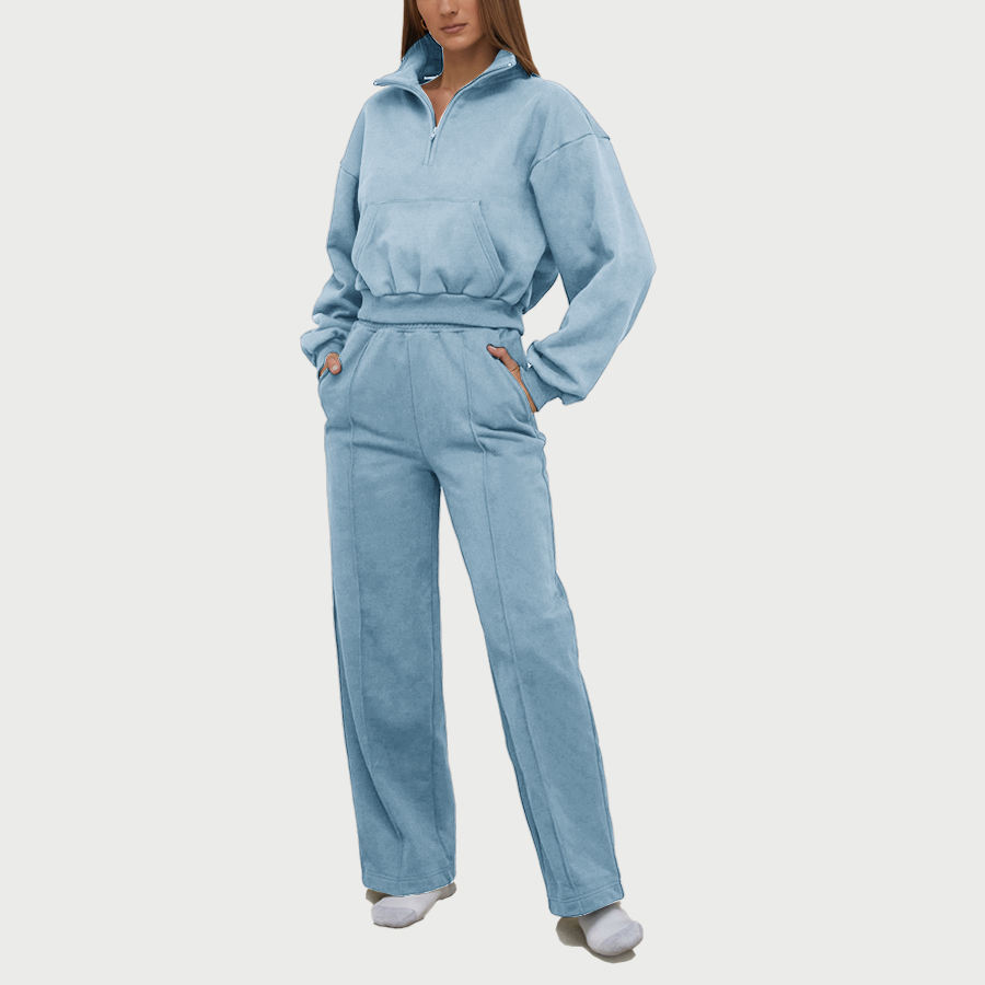 High Quality Hot Selling a Half Zipper Sweater Straight-leg Pants 2 Pieces Suit for Women Jogging Leisure Sweater