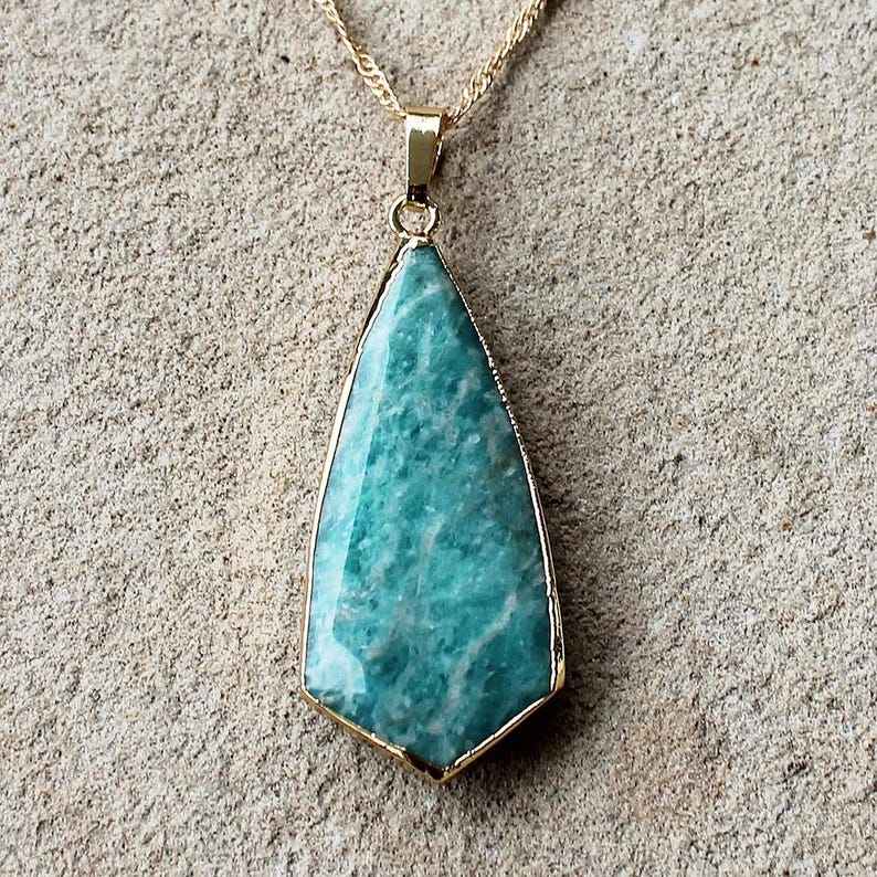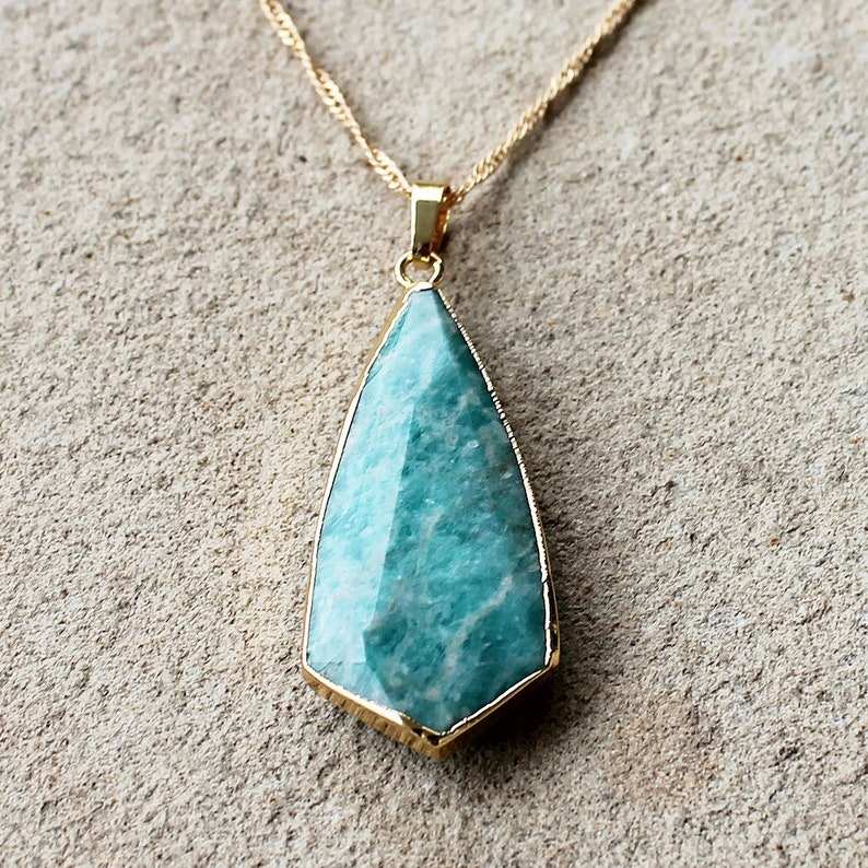 High Quality IGI Certified Amazonite Kite Pendant Natural Gemstone Necklace 925 Sterling Silver 14K Gold Plated Setting Jewelry