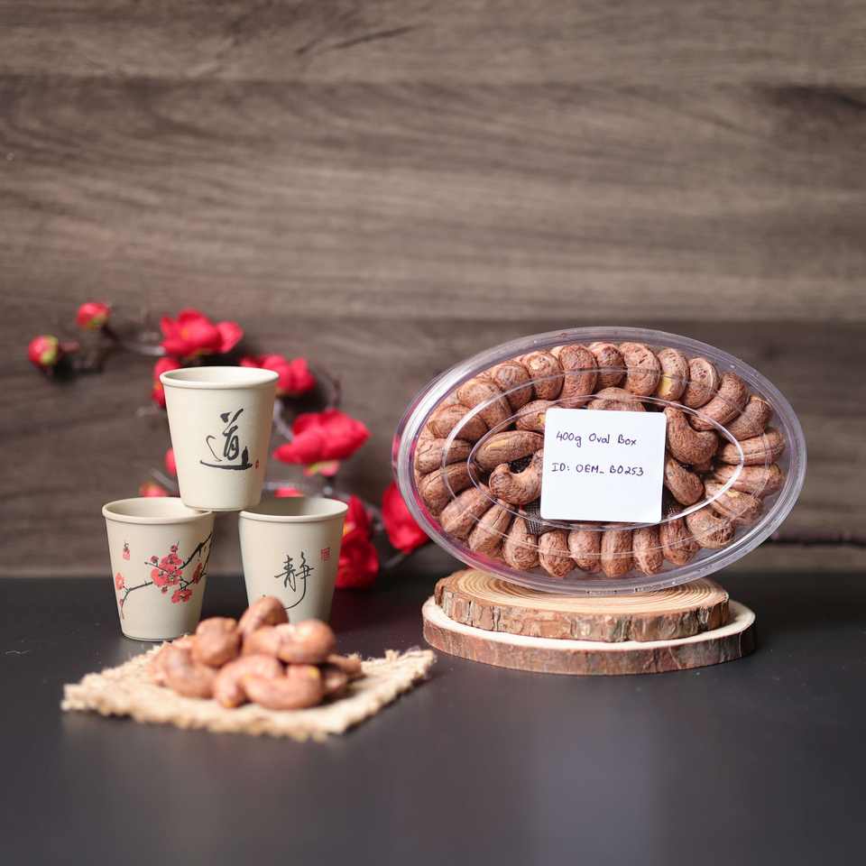 High Quality ISO Certified Organic Roasted Vietnam Dried Cashew Nuts 400g OEM Wholesale Oval Box Unique Buttery Salty Flavor