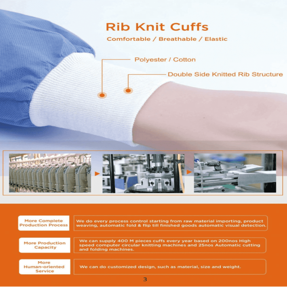 High Quality ISO13485 Standard Ribbed Cotton Cuffs for Nonwoven Gowns Knitting Rib Product