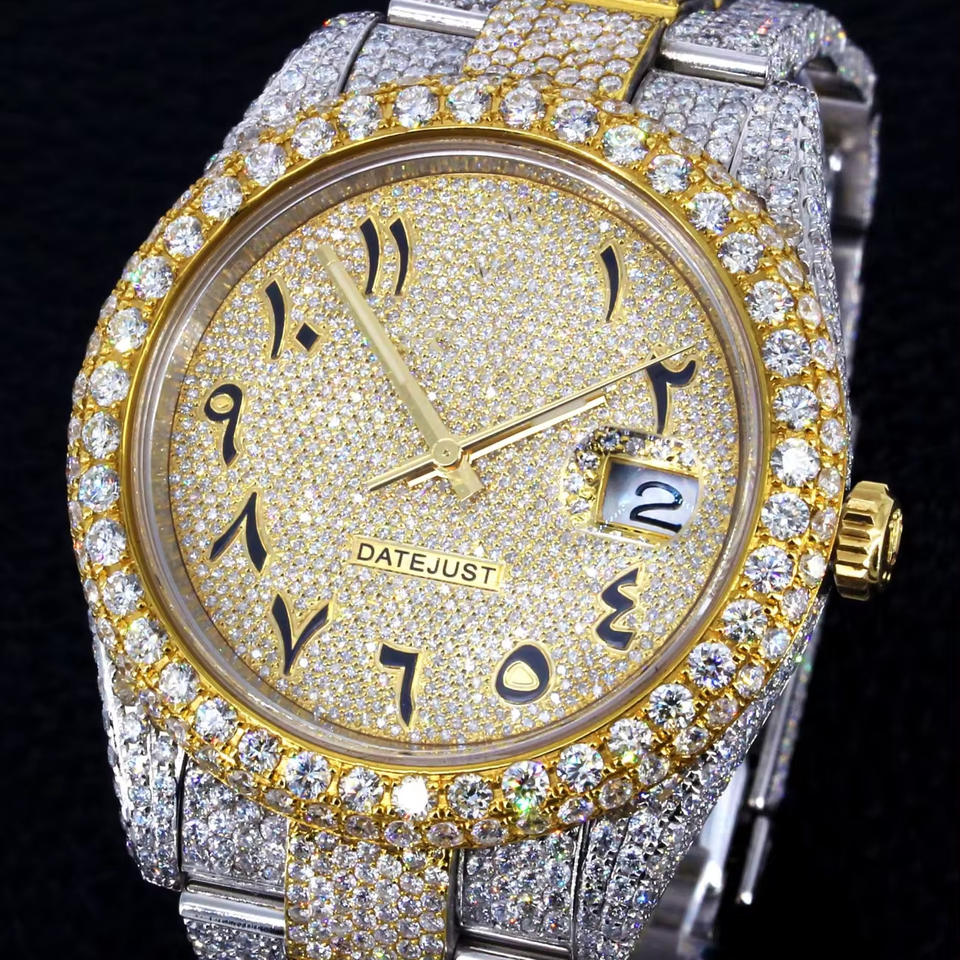 High Quality Iced Out VVS Clarity Moissanite Diamond Studded Stainless Steel Material Watch with round Dial from indian