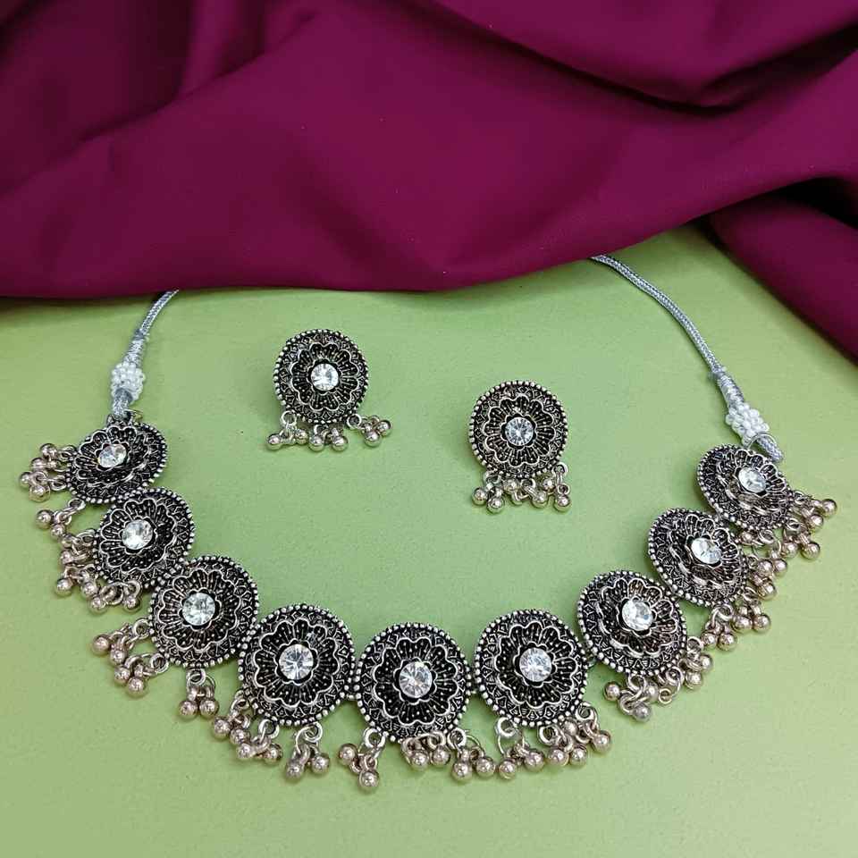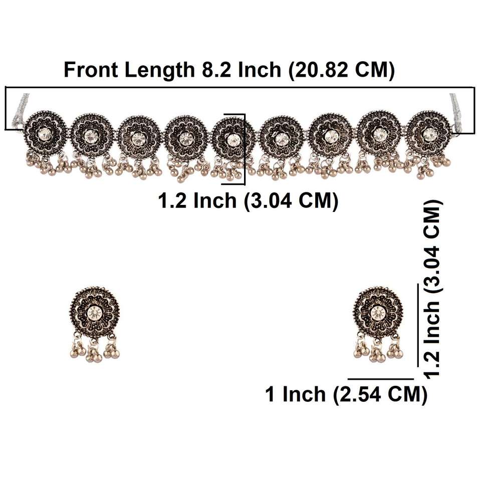 Design:Oxidized antique silver tone choker necklace earrings jewelry set