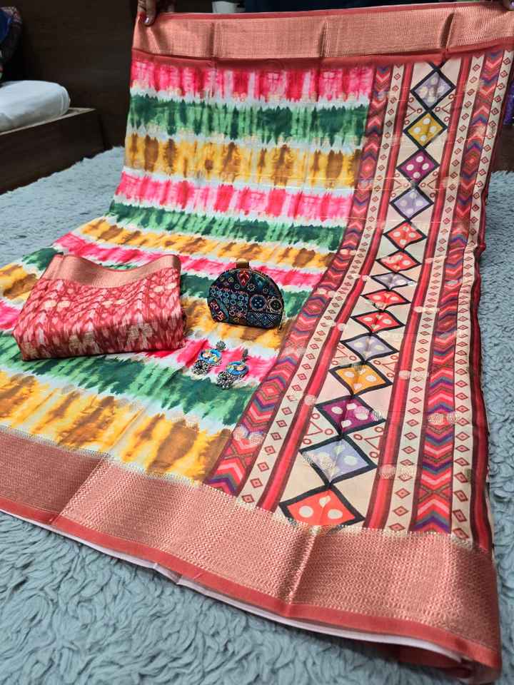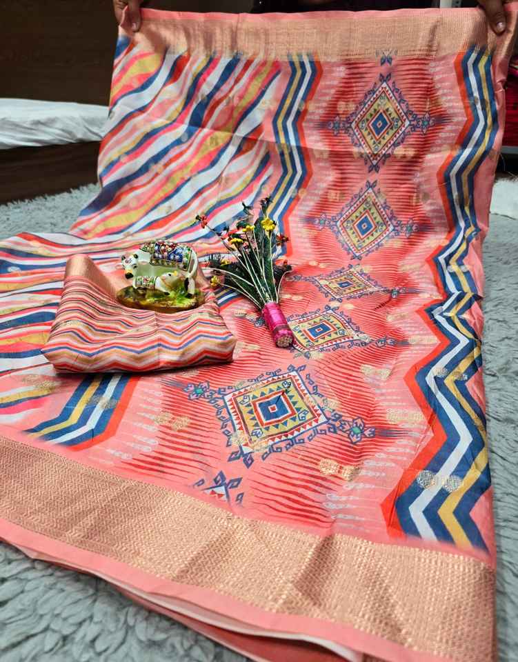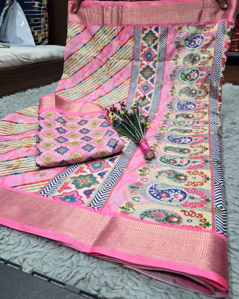 Work:JARI WITH BEAUTIFUL ZIGZAG LEHRIYA DIGITAL PRINT WITH RICH PALL