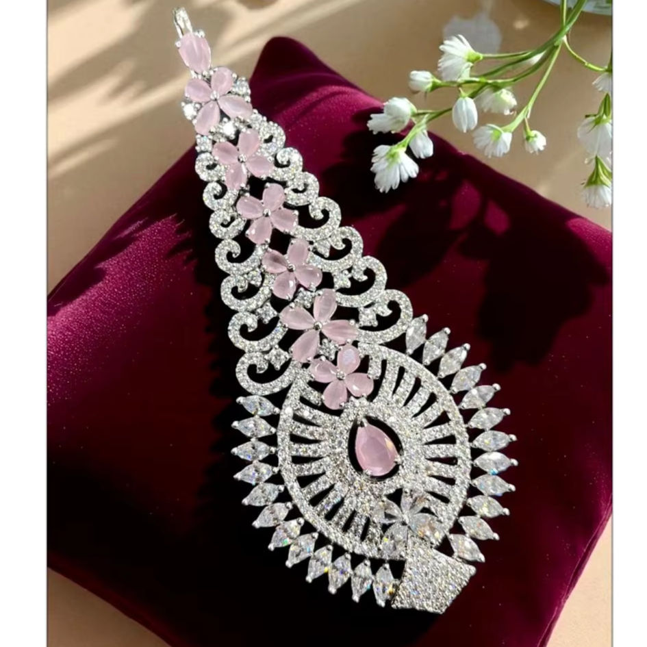 High Quality Indian Ethnic AD Pasa Jhoomar Hair Accessory with Zirconia Diamond for Wedding Engagement and Gift