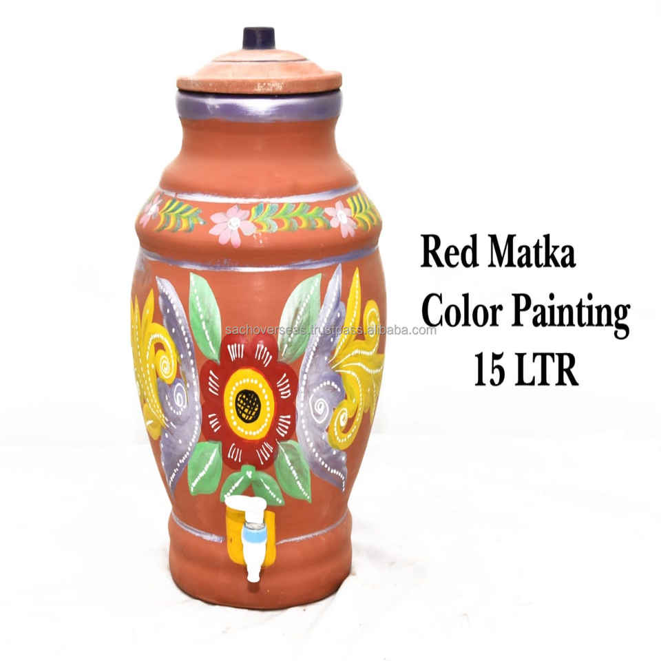High Quality Indian Handcrafted Decorative Water Pot for Naturally Cooling Water with Flip Flap Dispenser Tap for Sale