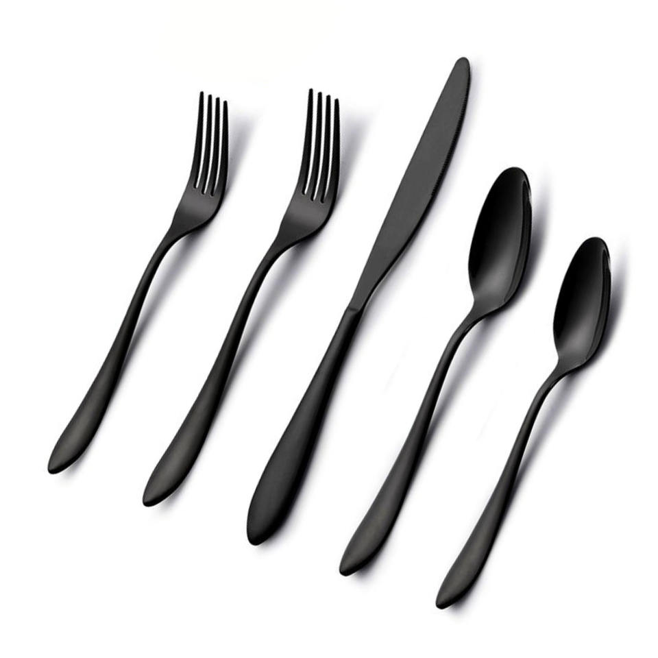 High Quality Indian Manufacturer Supply Knife Spoon Fork Wedding Black Silverware Flatware Stainless Steel Cutlery Set for Hotel