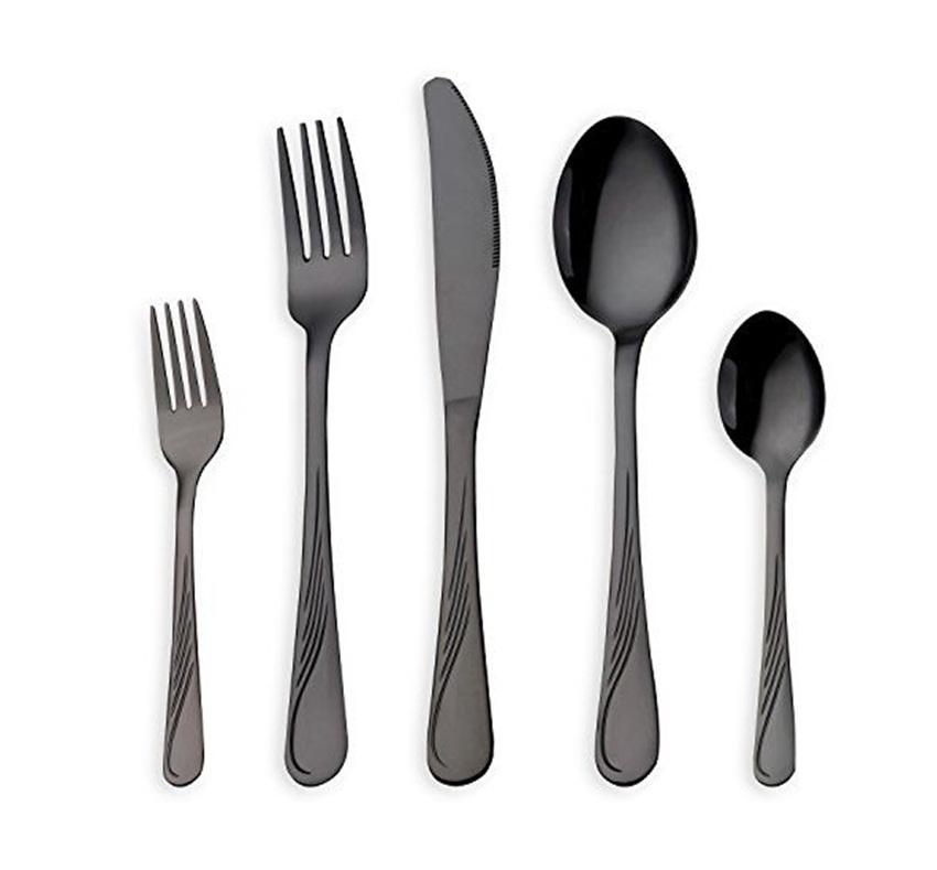 High Quality Indian Manufacturer Supply Knife Spoon Fork Wedding Black Silverware Flatware Stainless Steel Cutlery Set for Hotel