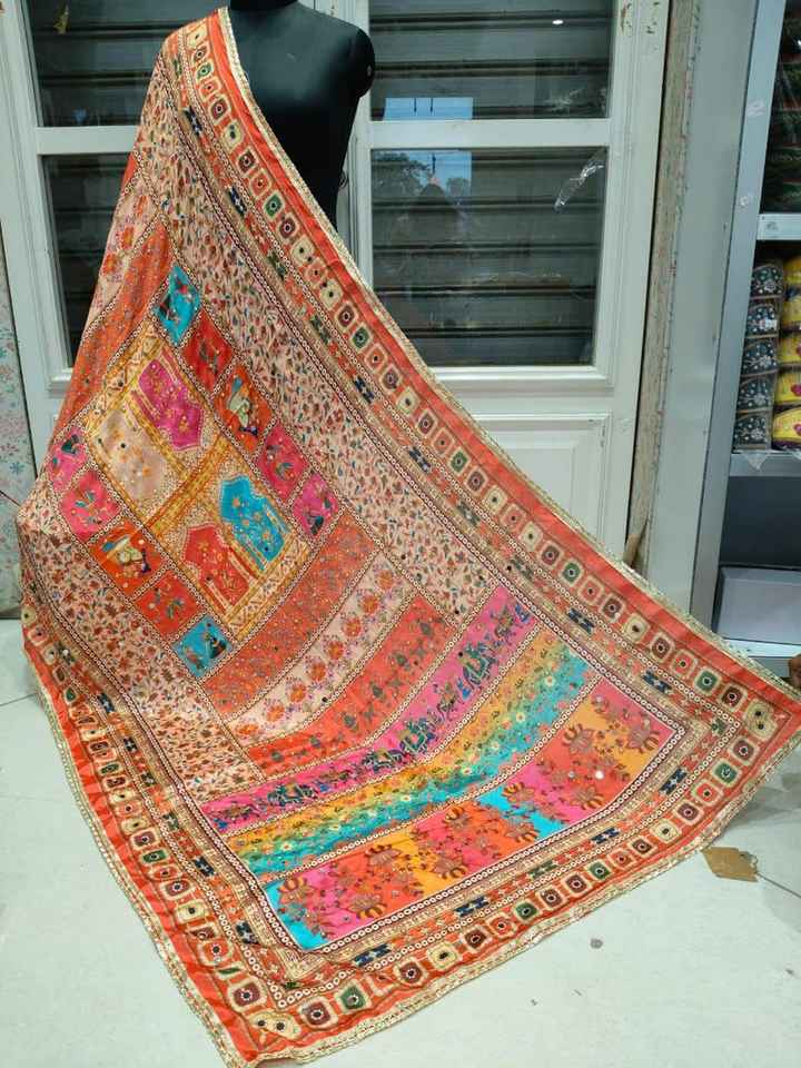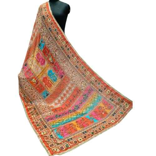 High Quality Indian Phulkari Hand Embroidered Dupatta Shawl Floral Design Handmade Beautiful Color Scarf for Women and Ladies