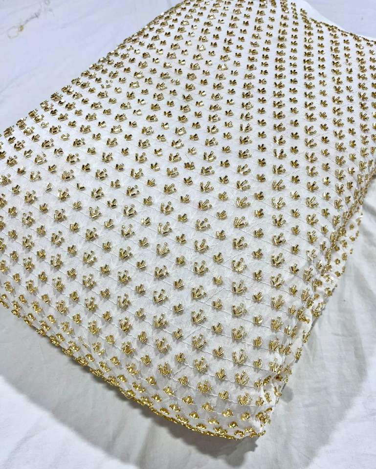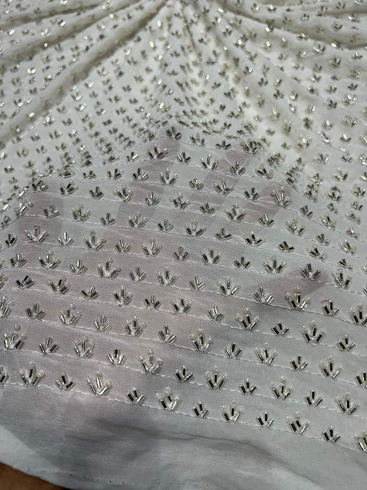 High Quality Indian Supplier Viscose Goergette Heavy Beads Fabric with Embroidery Style for Wedding Use for Girls