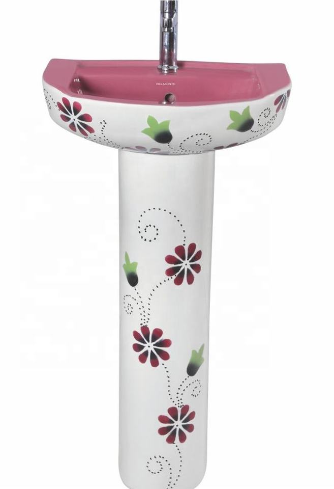 High Quality Indian Vitreous China Wash Basin with Pedestal Double Color Vitrossa Lavabo Sink Luxury India Export
