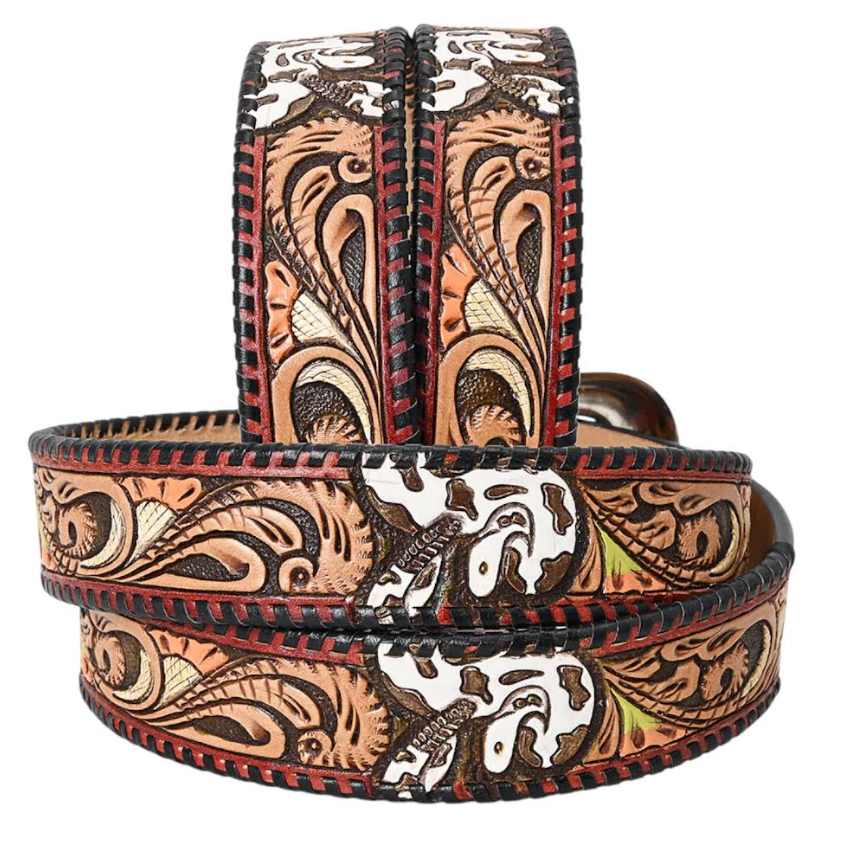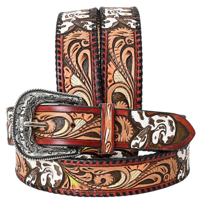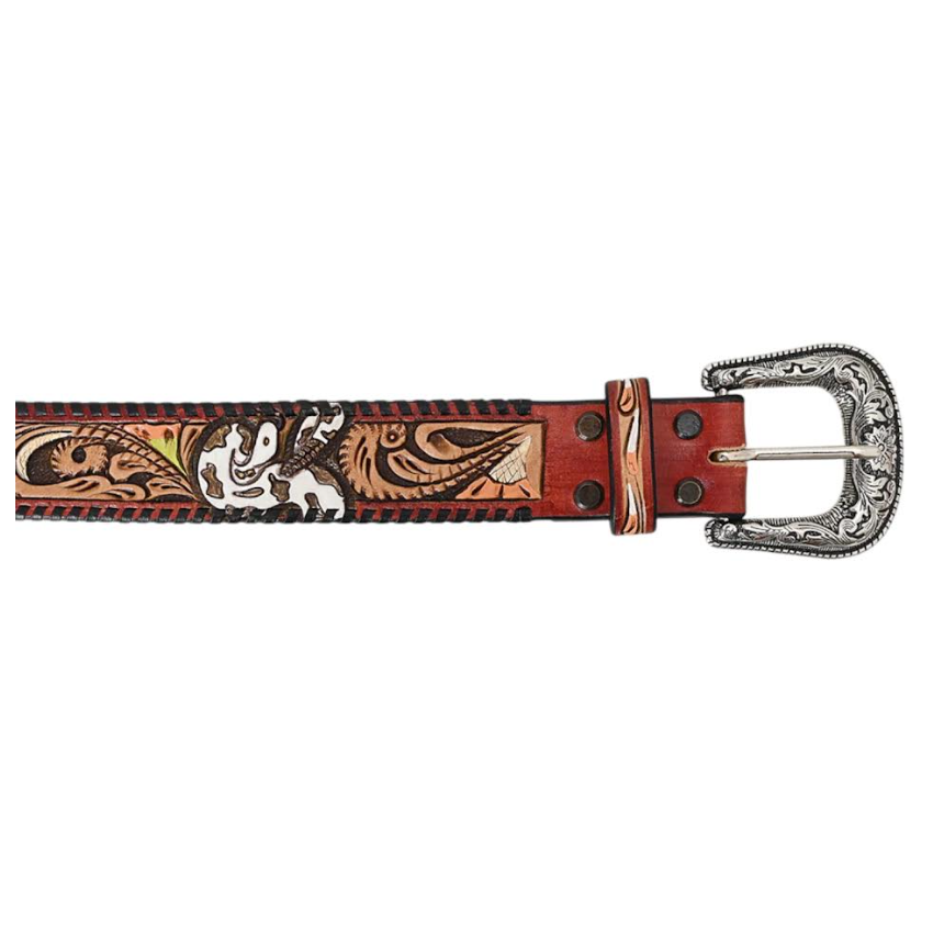 High Quality Indian Western Cow Leather Belt Vintage Cowboy Fashion Hand Tooled Cactus Design Alloy Wholesale Manufacturer
