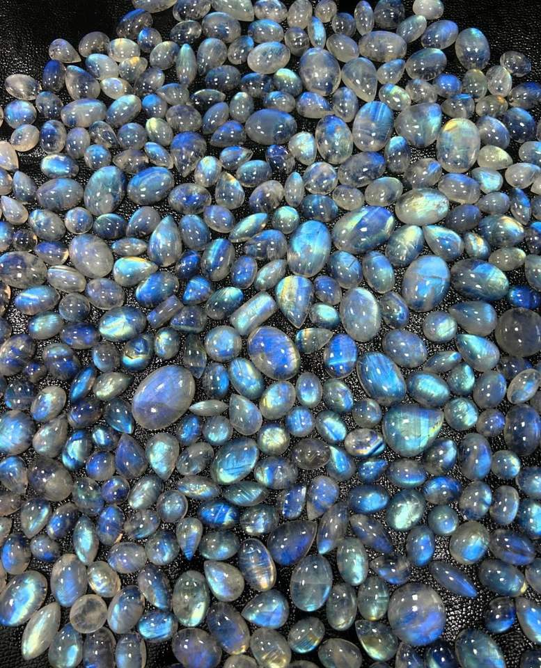 High Quality InfinityStones Natural Rainbow Moonstone White Fire Play Crystal Mixed Size Shape Blue Gemstone Cabochon Cut 100