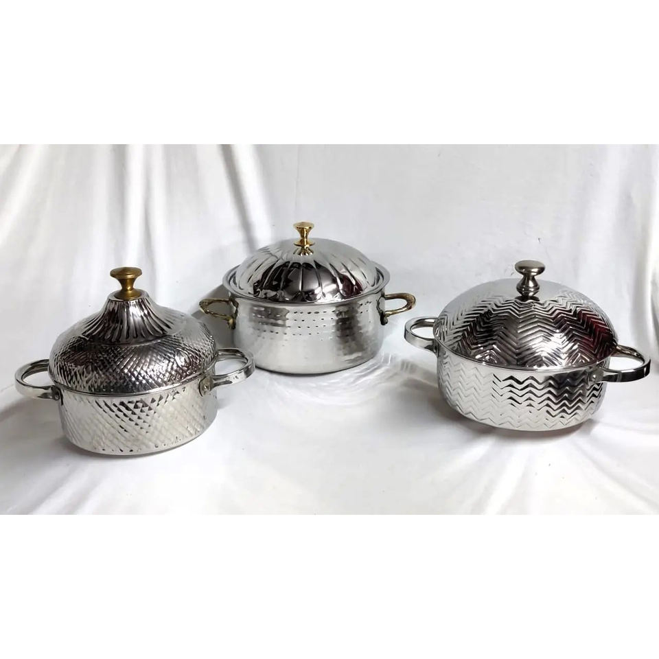 High Quality Insulated Stainless Steel Hotpot Designer Shiny Polished Metal Food Warmer Hotel Supplies Casseroles