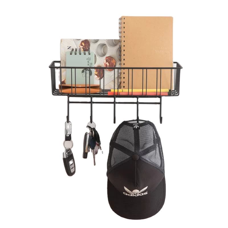 High Quality Iron Wrought Mail Sorter Organizer Wall Mounted Mail Holder with 4 Key Hooks Metal Wall Decor