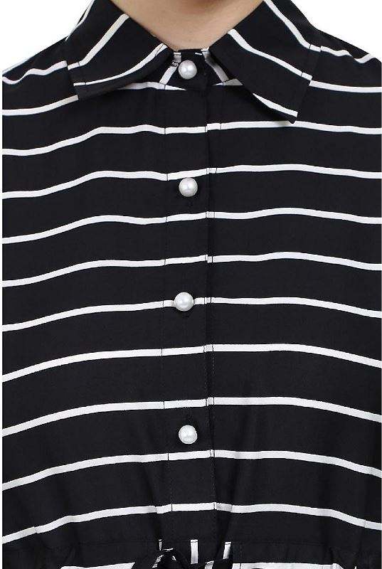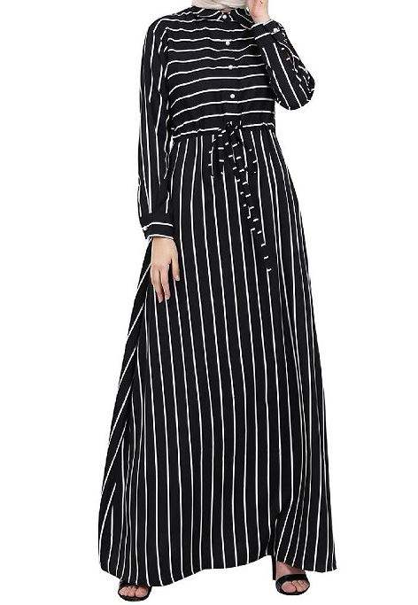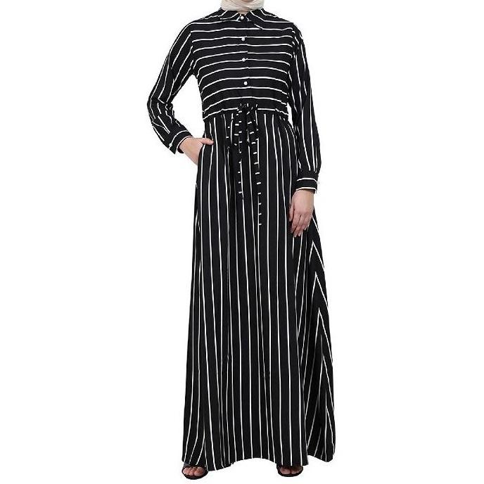 High Quality Islamic Modest Dress Top Polyester Fabric Stand Collared Striped Design Dress Islamic for Traditional Clothing