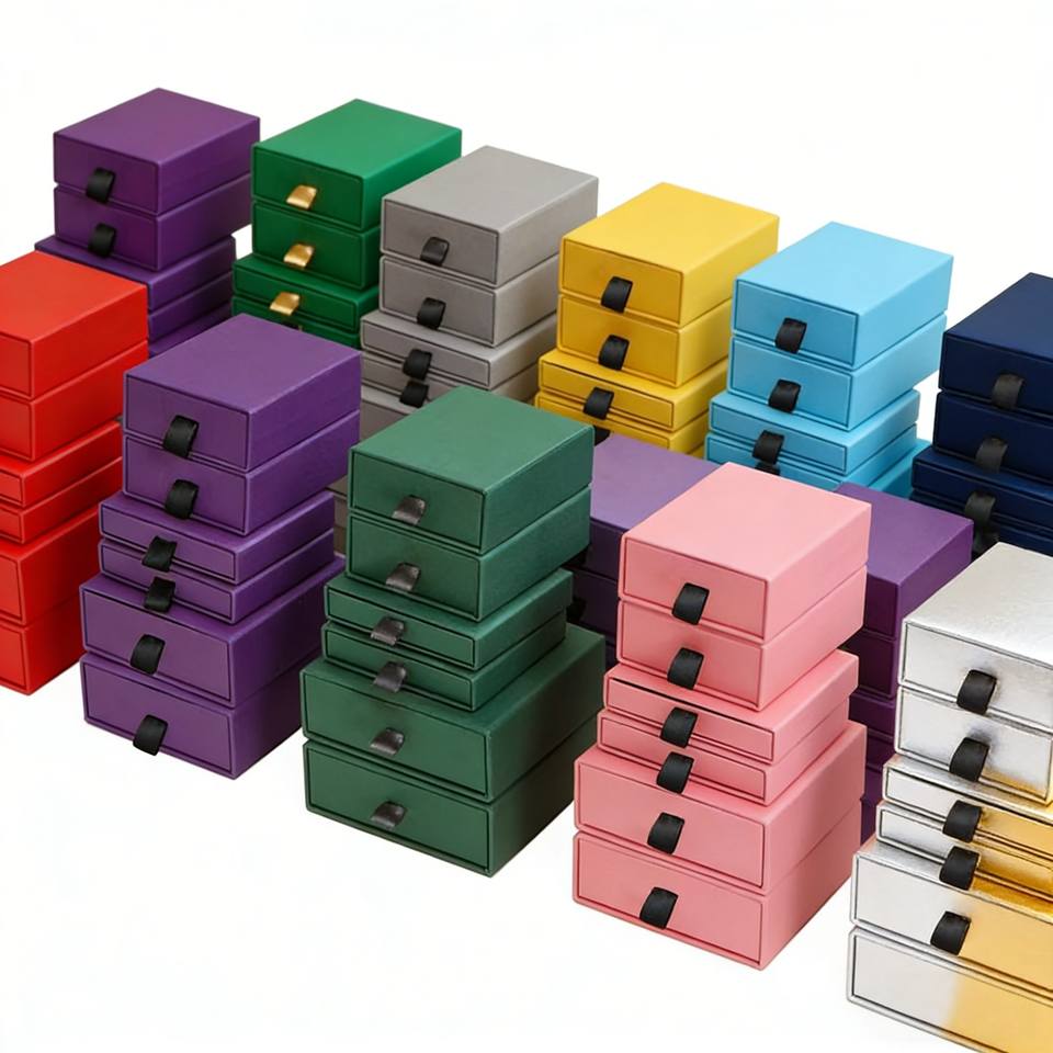 High Quality Recyclable Jewelry Cardboard Gift Box with Sponge Lining Custom Kraft Small Gift Drawer Slide Paper Boxes