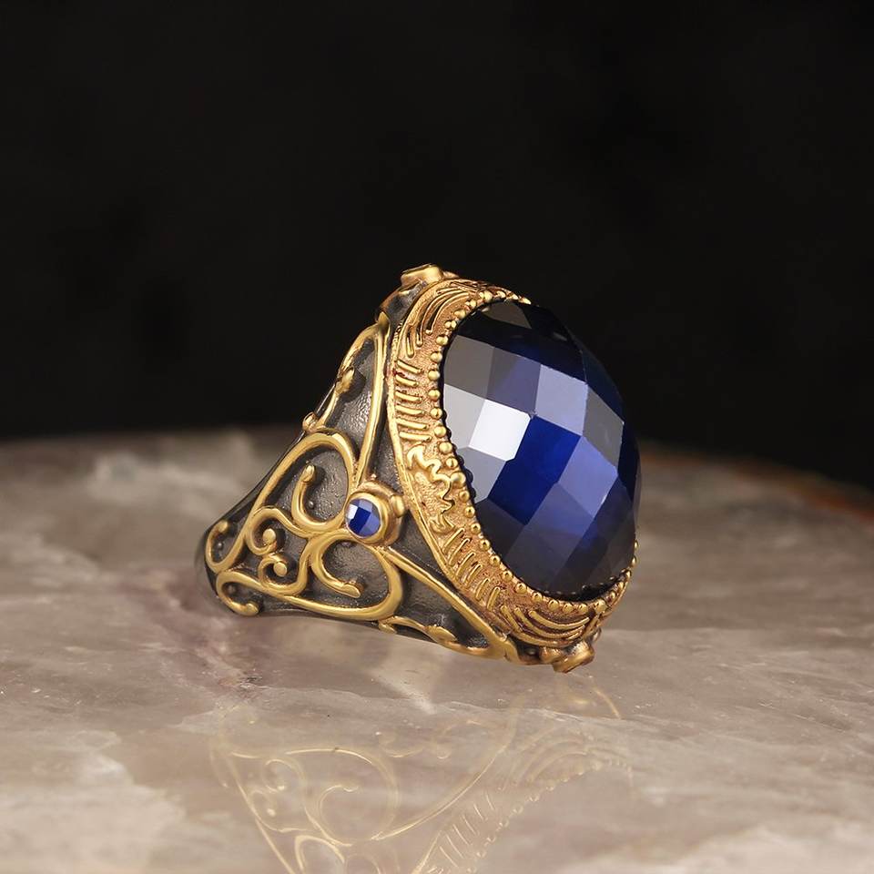 High Quality Jewelry Fashion Men's Luxury 925 Sterling Silver Ring Rhodium Plated Natural Stone Wholesale Jewelry From Turkey