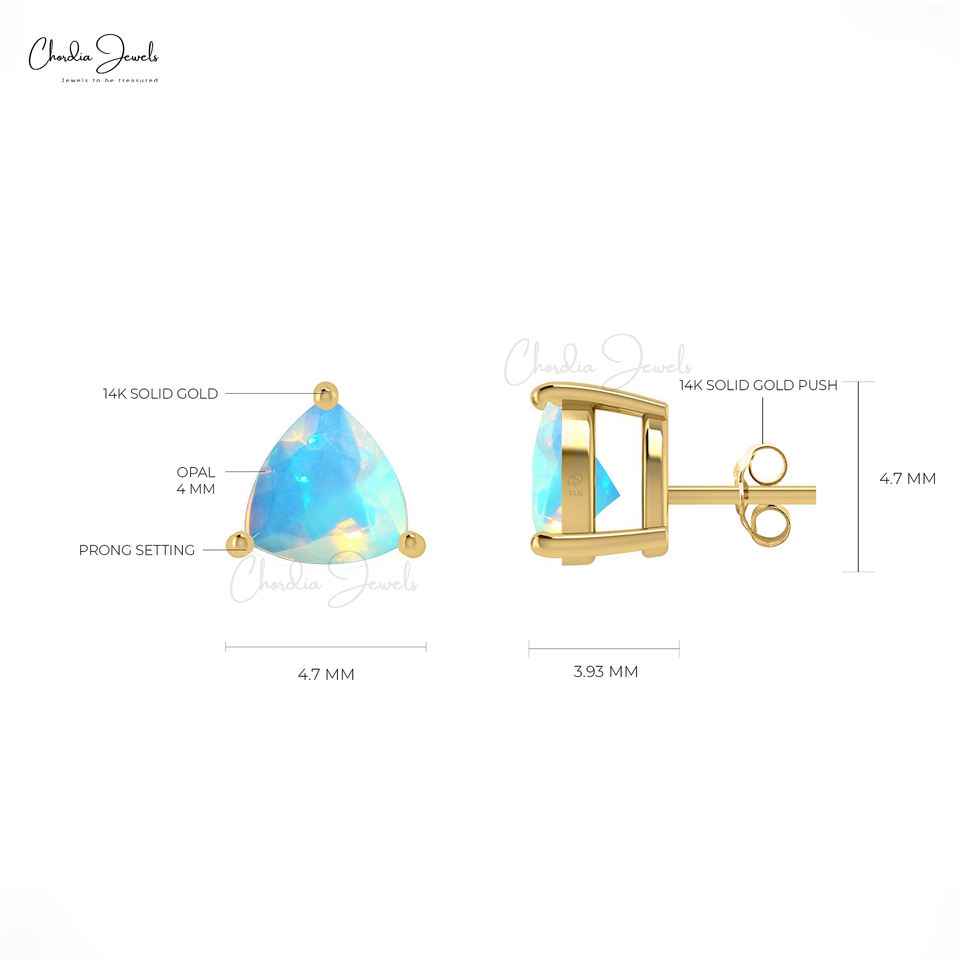 High Quality Jewelry Genuine Ethiopian Opal Stone Earrings 14k Solid Gold Trillion Shape Gemstone Opal Studs Earrings Women Bulk