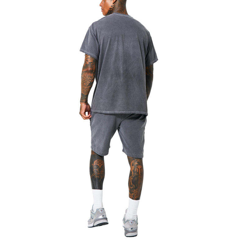 High Quality Joggers Set 100% Cotton Acid wash T Shirt and Short Set Custom Fashion Acid Wash Men Short Set Cotton Breathable