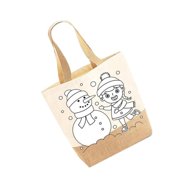 High Quality Jute Tote Shopping Bag Eco-Friendly Cute Padded Cord Handle Geometric Pattern Print for Daily Life Manufactured