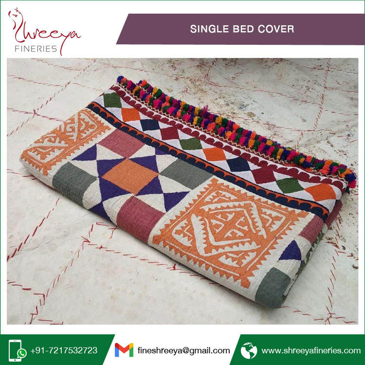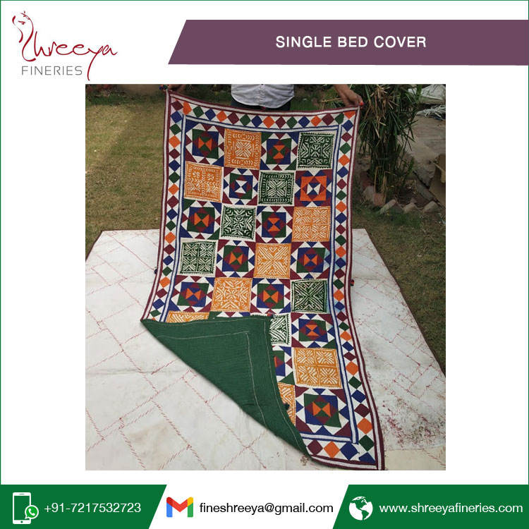 High Quality Kantha Geometric Pattern Single Bed Cover Best Selling Hand Embroidered Bedding Set for Classic Wholesalers