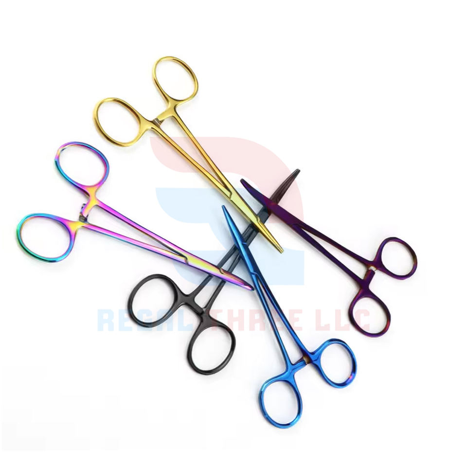 High Quality Kelly Hemostat Forceps 5.5" Curved 5 Pcs Set Manual Stainless Multi Color Gold Black Blue CE Certified Veterinary