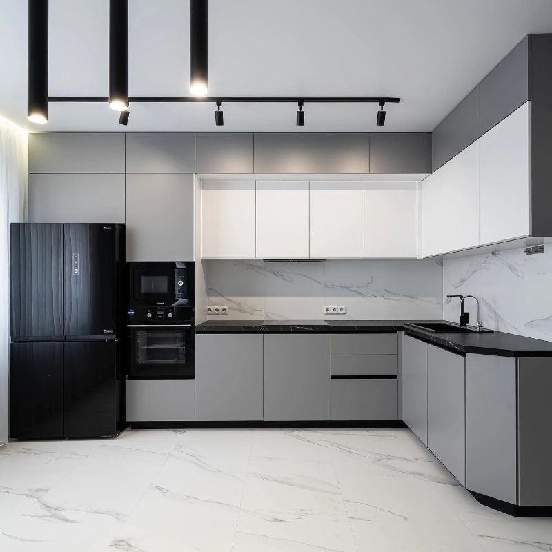 High-Quality Kitchen Cabinets Stylish Style Kitchen Storage Units L-Shaped Readymade Wooden Kitchen Cabinets